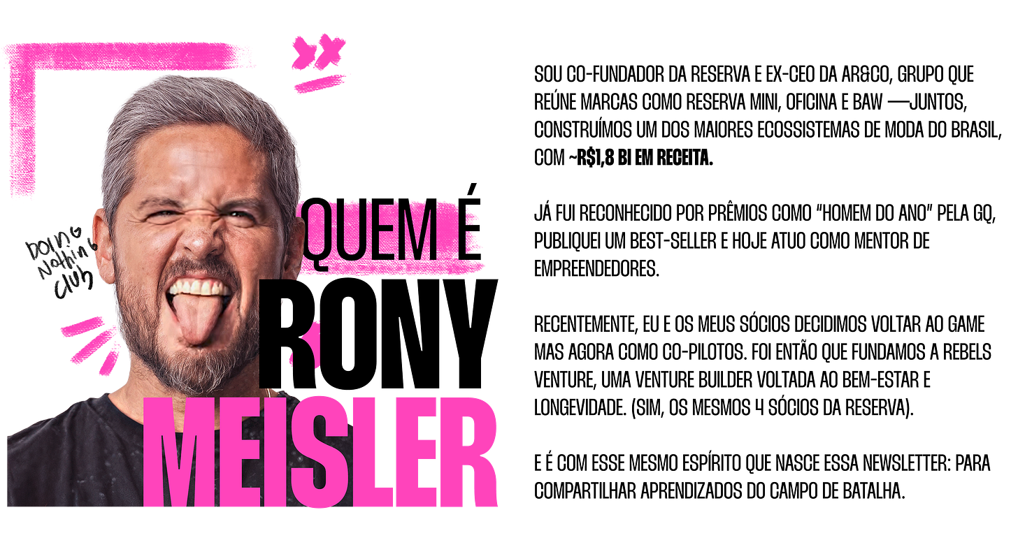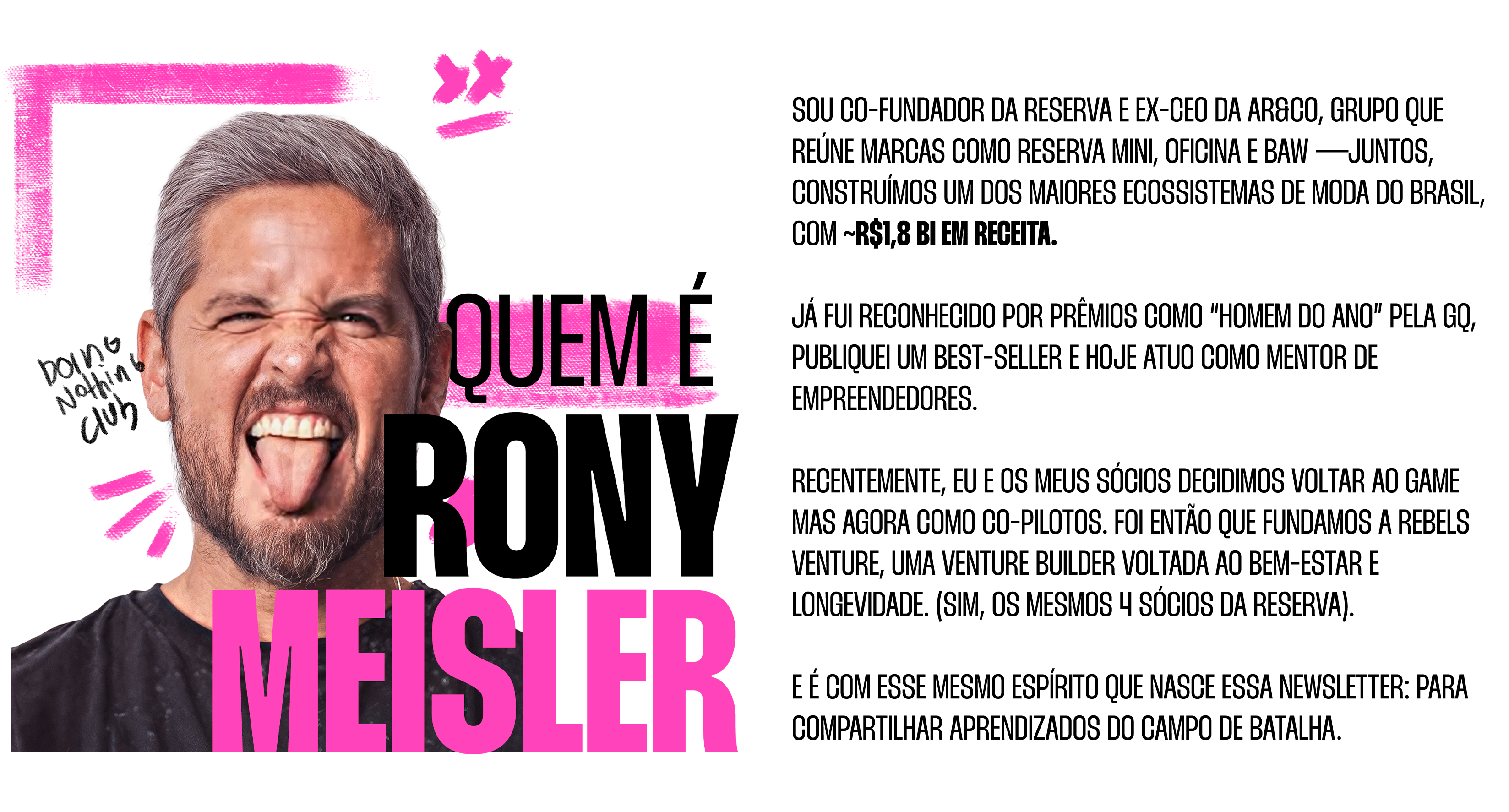 Vendemos e deixamos o negócio quando já não fazia mais sentido estar nele. E agora, dos 40 aos 50, empreendemos novamente com a Rebels Ventures: em vez de fishermen, agora somos fishers of men. Investindo e fazendo junto com empreendedores fantásticos em negócios com foco em estilo de vida (beleza, saúde e bem-estar) e creators economy.